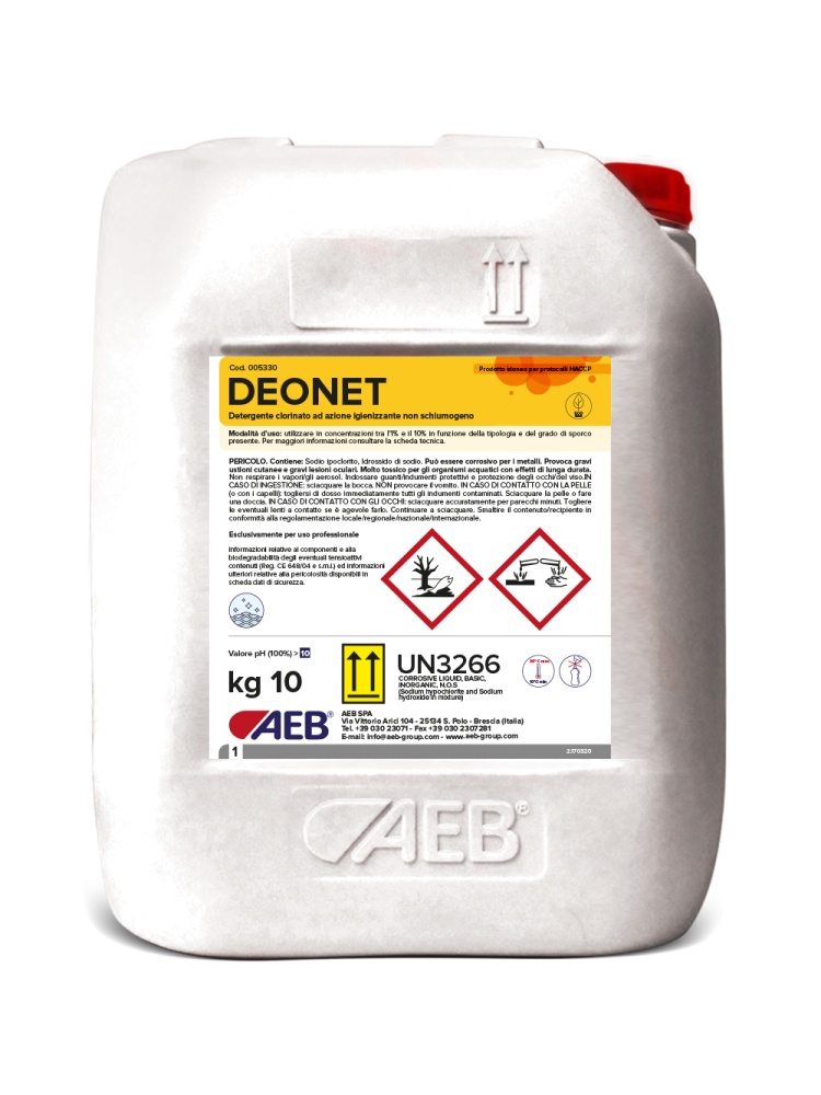 Deonet è in grado di liberare un tenore in cloro elevato idoneo anche per situazioni di sporco e