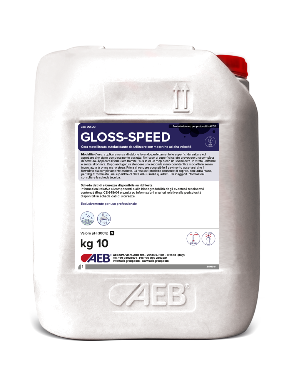 Gloss-Speed è una cera metallizzata autolucidante adatta per trattamenti di pavimenti e superfici