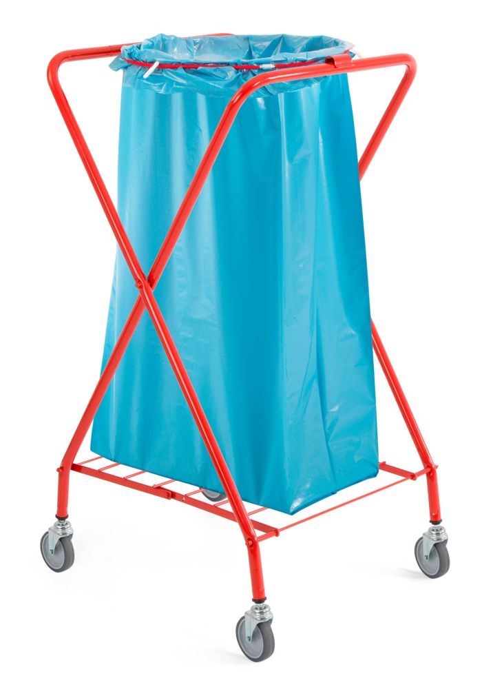 Carrello portasacco a "X" verniciato con attacco rotondo 120 lt, elastico e ruote piroettanti ø 80 mm.